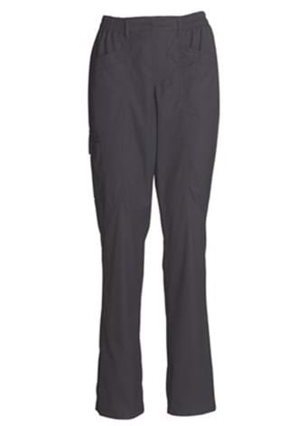 elastic in waistband. 2 back pockets. 2 Lock pockets. Thigh pocket with flap. Push button on thigh pocket is placed so that it does not scratch screen. No leg adjustment. Skr.lgd. 92 cm.