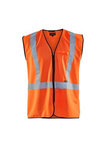Lightweight and durable safety vest with zipper and reflexes around life to see from all sides. Certified according to EN ISO 20471, Class 2, clothing with high visibility.