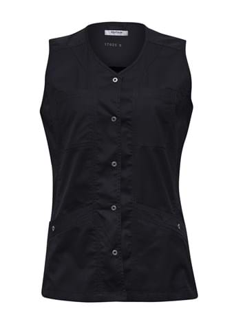 · Sustainable fabric · Sustainable Cotton · Recycled Polyester from PET Bottles · Natural Stretch - equals 4% Stretch · Push Buttons · 2 Breast Pomergs with “Pencil” Strap · 2 Hip pockets with Push Buttons · Internal Separate Pocket In Hip pocket · Adjustable Back · Key Stropper · Slit in the sides