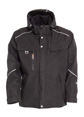 Lined winter jacket with taped seams and reflective details. Wind and waterproof according to EN 343. Outer fabric EN 343 4:4. Quilted with fiberfur lining in front and lower back for extra warmth. Zip closing with double storm flap. Adjustable and detachable hood. Collar with adjustable width. Chest pocket with flaps, right with keyring holder. Pocket for pen under left chest pocket flap. Mobile phone pocket with zip. Side pockets with zip. Draw cords at waist. Adjustable width at the bottom of the jacket. Ventilation on the back. Adjustable cuffs and inside knitted windstoppers. Safety pocket with zip for Ipad/document under storm flap. Inside pocket. Reflective details on shoulders, sleeves and back. Zip in access for back heat seal badges. *The garment is tested in a 3 layer system together with basic underwear. Tranemo recommends underwear 6975/6979 and 6930.