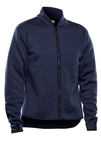 Klassisk fiberpels jakke med tommefingergreb, forlænget ryg. Rund halsudskæring.