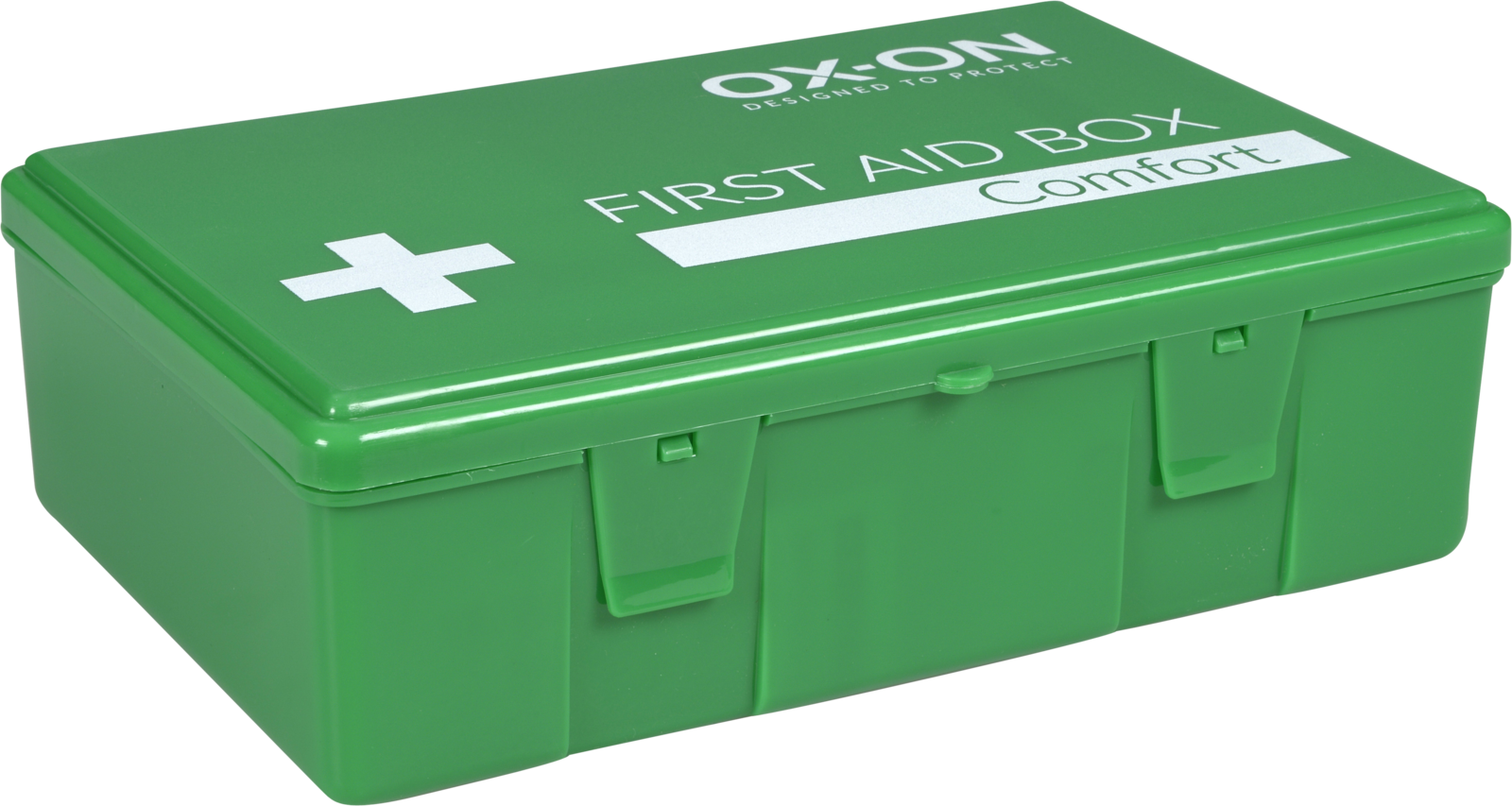OX-ON First Aid Box Comfort er en velassorteret førstehjælpskasse til dig, der vil være sikker på at kunne yde førstehjælp – uanset hvor du er! Denne førstehjælpskasse er fyldt med uundværlige remedier, du kan få brug for ved både små og større ulykker. Du kan derfor have stor gavn af First Aid Box Comfort i fx skurvognen, sommerhuset, campingvognen eller i bilen. Kassen indeholder: 1 stk. Plasterrulle 2,5 cm x 5 m 4 stk. Elastisk plaster 10x6 cm 1 stk. Kompresforbinding 6x8 cm 2 stk. Kompresforbinding 8x10 cm 1 stk. Kompresforbinding 10x12 cm 1 stk. Gazekompres 60x40 cm 1 stk. Gazekompres 60x80 cm 2 stk. Gazebind 6x400 cm 3 stk. Gazebind 8x400 cm 1 stk. Alu-tæppe 160x210 cm 6 stk. Gazekompresser 10x10 cm 2 stk. Armklæde 136x96x96 cm 10 stk. Plaster i assorterede størrelser 2 stk. Sårrens servietter 1 stk. Metalsaks 4 stk. Engangshandsker 1 stk. Beskrivende førstehjælpsvejledning Du får alle delene leveret i en praktisk grøn plastkasse, så du altid har remedierne samlet, når der er behov for at yde hjælp. Kassen opfylder kravene i den tyske DIN norm 13164.