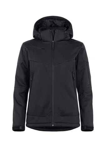 Komfortabel, moderne og polstret softshell jakke. En aftagelig og justerbar hætte. Forbøjede ærmer for at lette bevægelse. Fire udvendige lommer med vandtætte lynlåse og to inderlommer – en med lynlås og en mesh. Manchetter med velcrojustering og refleks detaljer bagpå. Sort for, broderi og lynlås.