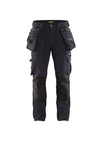 Håndværker bukser i 4-vejs stretch materiale, komfort og funktion i den perfekte kombination. Alsidige og komfortable håndværker bukser, ekstremt bløde og fleksible med smalle ben. Disse bukser er designet til at modstå krævende opgaver uden at gå på kompromis med komfort og pasform. Bukserne er blødt 4-vejs stretch materiale, der er både stærkt og fleksibelt i alle retninger. Bukserne har avancerede detaljer og praktiske lommer med CORDURA® forstærkning, en lårlomme med lynlås og læg, en tommestoklomme, sømlommer og funktionelle værktøjsstropper, for eksempel en hammerstrop. Knælommen er forstærket med CORDURA® stretch materiale på ydersiden og stretch materiale på indersiden for øget bevægelsesfrihed. Blødt mesh stretch i knæhasen for god ventilation. Benafslutning med forstærkning på bagsiden giver effektiv beskyttelse mod slitage.