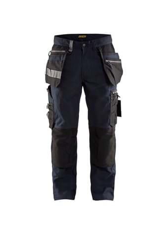 Funktionelle og komfortable håndværker bukser med sømlommer og let tilgængelig telefonlomme. Knælommer fremstillet af CORDURA® stretch materiale for perfekt pasform og holdbarhed. To baglommer med læg, hammerstrop, forstærket tommestoklomme, blyantlomme og knivholder. Formsyede ben giver en fremragende pasform.