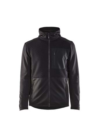 3540-2526-9900Smart hættetrøje, der kan bruges både til fritid og arbejde. Hættetrøjen i polyester har lang lynlås og en praktisk højere krave i forbindelse med hætten. Kan justeres nederst med snøre, som sidder inde i lommerne. De sorte refleksdetaljer sidder både på fronten og hætten, men ikke på brystlommen, så den er velegnet til montering af logo.