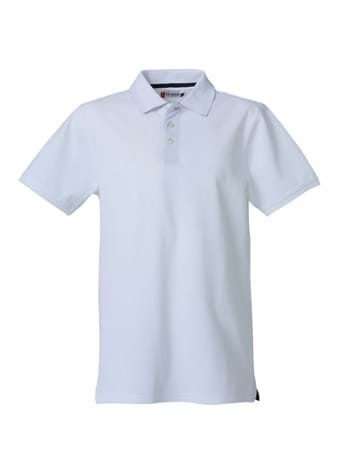 Kraftig polo i enzymbehandlet kæmmet og forkrympet bomuld, sildeben på indvendige kantbånd, slidser i siden samt 3 tone i tone knapper på herremodel og 4 på damemodel.