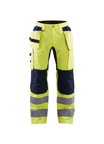 High vis buks med stretch paneler i skridt og hofte samt knælommer i CORDURA® stretch for optimal komfort. Buksen har sømlommer samt tommestoklomme. Certificeret i henhold til EN ISO 20471, klasse 2, sikkerhedsbeklædning med høj synlighed.