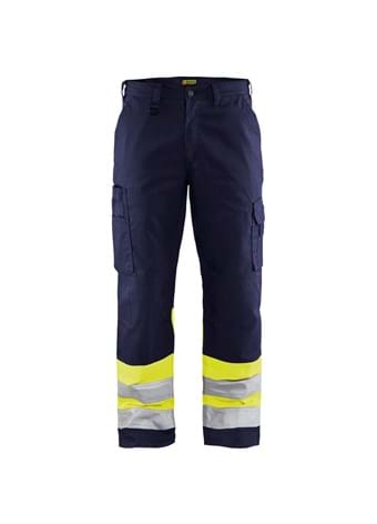 Let High Vis buks med en moderne pasform, god slidstyrke og knælommer. C-størrelser kan forlænges til ekstra benlængde. En funktionel buks i håndværker kvalitet. Certificeret i henhold til EN ISO 20471 klasse 1, sikkerhedsbeklædning med stor synlighed.