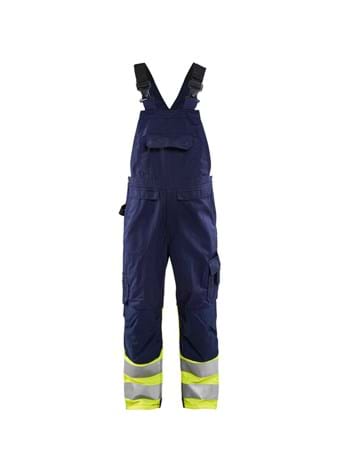 High vis overall med reflekterende detaljer på bagsiden. Bukserne har CORDURA® knælommer, samt CORDURA®-forstærkede baglommer og tommestoklomme. Aftagelige sømlommer 2183, som sælges separat, kan let monteres. De formsyede ben giver større komfort og de kan justeres i taljen. Certificeret i henhold til EN ISO 20471 Klasse 1. Samcertificeringsgruppe W.