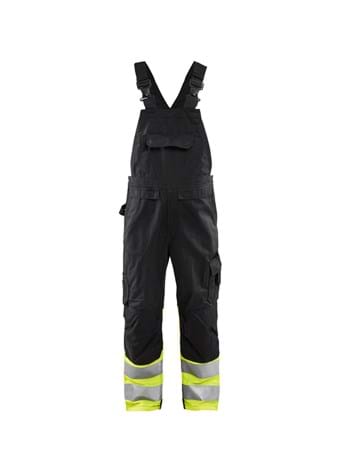 High vis overall med reflekterende detaljer på bagsiden. Bukserne har CORDURA® knælommer, samt CORDURA®-forstærkede baglommer og tommestoklomme. Aftagelige sømlommer 2183, som sælges separat, kan let monteres. De formsyede ben giver større komfort og de kan justeres i taljen. Certificeret i henhold til EN ISO 20471 Klasse 1. Samcertificeringsgruppe W.
