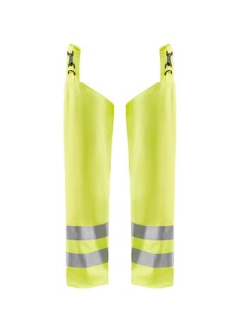 High Vis Overtræksben til dig med arbejdsopgaver, der kræver let og fleksibelt regntøj. Overtræksben er vind- og vandtæt med svejsede sømme samt forsynet med en karabinhage i plast, der kan fastgøres til et bælte eller bukser. Certificeret i henhold til EN 343, Klasse 3.1, beskyttelsesbeklædning mod dårligt vejr og EN ISO 20471, Klasse 2, beskyttelsesbeklædning med høj synlighed.