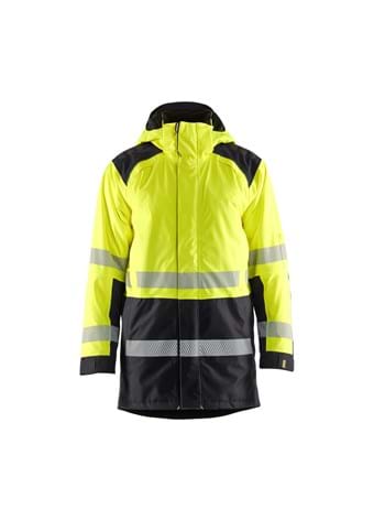High vis vinter parka med et design og quiltet for, der holder dig varm når du er på arbejde. Parkaen er vind- og vandtæt med tapede sømme, og hætten er aftagelig og tilpasset til hjelme og høreværn. Justerbar i taljen for individuel komfort, med lynlås i siderne for adgang til inderlommerne uden at åbne fronten og blive kold. Certificeret i henhold til EN ISO 20471 Klasse 2 XS-S, klasse 3 M -->, Samcertificeringskategori B ->M