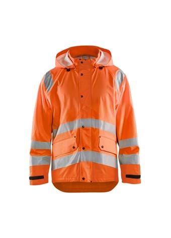 Hej vis regnjakke med udvidet ryg. Denne lette regnjakke giver dig stor synlighed på arbejdspladsen, når vådt vejr og dårlig synlighed kan gøre arbejdsforholdene vanskelige. Materialet er stærkt og holdbart, selvom det er let, vind og vandtæt og med svejste sømme. Jakken har en udvidet ryg og justerbar bundkant med let adgang lommer med klap og ærme manchetter med velcro. Certificeret til EN 343, klasse 3.1, beskyttelsesbeklædning mod dårligt vejr og EN ISO 20471, klasse 3, beskyttelsesbeklædning med høj synlighed.