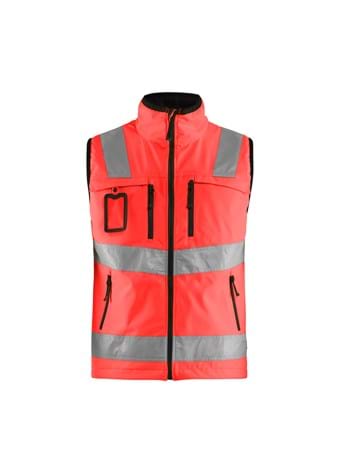 Moderne softshellvest i Hi vis farver med et vandtæt materiale som ånder. Vesten har en høj krave og et blødt fleecefoer. Certificeret i henhold til EN ISO 20471.