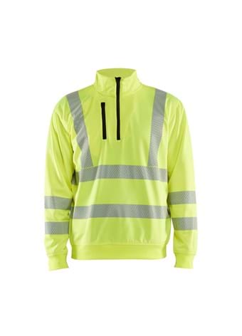 Sweatshirt med kort lynlås i high vis klasse 3 med fleksible trykte reflekser for ekstra synlighed. High vis materialet er en blød og dejlig fleece, der giver en uovertruffen kombination af sikkerhed og komfort. Har krave, brystlomme og ribkant. Kan industrivaskes. Certificeret i henhold til EN ISO 20471 klasse 3. Industrivask EN ISO 15797.