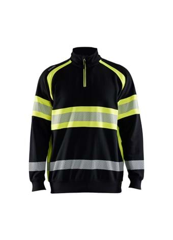 Blød og komfortabel high vis sweatshirt med trykte fleksible reflekser for ekstra god bevægelsesfrihed og åndbarhed. Har en høj krave, kort lynlås og ribkant i linning samt ærmeafslutning for højere komfort. Den mørke kontrastfarve på sweatshirten består af 100% bomuld, og high vis materialet er lavet af 100% polyester. Certificeret i henhold til EN ISO 20471, klasse 1.