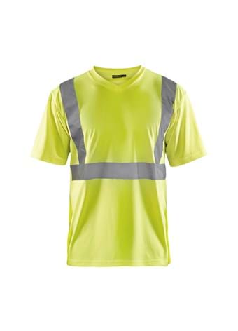 Komfortabel sikkerheds t-shirts med v-hals. Materialet har god åndbarhed og er certificeret i henhold til EN ISO 20471 klasse 2., beklædning med høj synlighed.