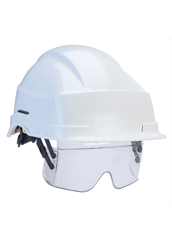 Hjelm af ABS-plast med 6-punktsophængt indsats med brede bånd og svederem. Hjelmen har ventilationshuller og slids for montering af tilbehør. Indstillelig i str. 53-63. Modstår kuldegrader (-30° C). Integreret visir af slagfast polycarbonat.