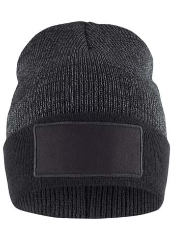 024135-949Strikket hue med ombuk og indstrikket, refleks tråd. Patch foran med mulighed for print (størrelse 9,5 x 4,5 cm)