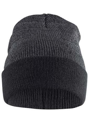024134Strikket hue med ombuk og indstrikket, refleks tråd.