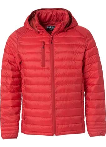 Moderne jakke med dun lignende polstring. Aftagelig hætte og 3 udvendige lommer med lynlåse og 2 indvendige lommer. Løkke i nakken til høretelefoner.