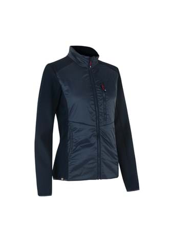 Eksklusiv komfortable hybrid jakke med let vattering. Vatteringen er THERMOLITE®T-DOWN lavet af recycled plastikflasker. Ærmer og bærestykket er lavet i en lækker blød og strækbar bikube mønstret fleece kvalitet. Flotte matte lynlåse fra YKK. Lommer og ærmer er kantet med blødt elastisk bånd. Indvendig lomme.