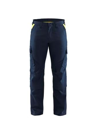Disse bukser er en del af Blåkläders nye industri kollektion med stretch. De er velegnet til industrivask. Bukserne er i et ridsefrit design, et komfortabelt 2-vejs stretch materiale, og har en elastisk talje for at gøre dem endnu mere komfortable. Skjulte funktioner omfatter en indvendig tommestoklomme, sikkerhedslomme med lynlås og trykknapper, der gør bukserne til et fremragende valg, når der arbejdes i miljøer med følsomme overflader. I modsætning til model 1444 har denne buks udvendige knælommer. Bukserne har reflekterende detaljer for ekstra synlighed, når det er nødvendigt.