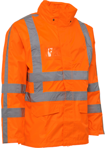 Regnjakke med ekstra ryglængde og tapede sømme. 2 lommer med gribebånd og skjult hætte. Vindfang med trykknapper i front og trykknap ved ærmer. ID lomme, hage beskyttelse.