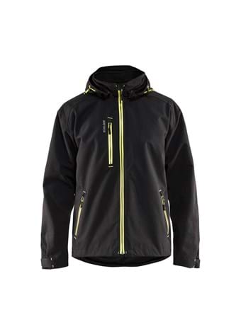 En smart vind- og vandtæt skaljakke med tapede sømme og åndbarhed. Skaljakken er meshforet og med aftagelig hætte. Findes i hel sort med kontrastfarvede detaljer.