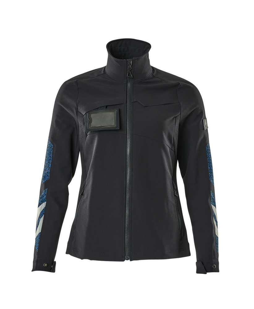 Specielt designet og figursyet til damer.; Strækstoffet er elastisk i alle retninger, hvilket giver en unik bevægelsesfrihed, hvor intet strammer eller generer.; Det multifunktionelle strækstof kombinerer en lav vægt med en meget høj slidstyrke, samtidig med det er vandafvisende.; Produktet kan industrivaskes.; Lukning med lynlås og indvendigt vindfang, så vinden holdes ude.; Ekstra synlig for omgivelserne ved hjælp af reflekseffekter.