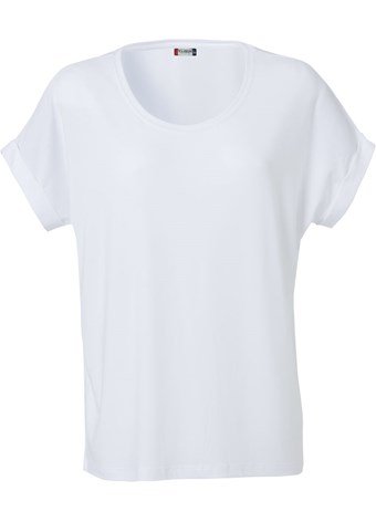 Meget blød dame t-shirt med løs pasform, sidesøm og opfoldet ærmekant.
