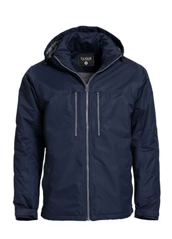 Vind- og vandtæt polstret jakke. 4 udvendige og en indvendig lomme med lynlåse samt 2 indvendige netlommer. Aftagelig hætte og skjulte manchetter i rib. Høretelefon løsning. W/P 3000 MVP 3000.
