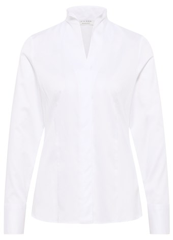 Smidig og fint skinnende - vores SATIN SKJORTE. I farven hvid er den en uundværlig bluse i enhver stilfuld kvindes garderobe. Dette must-have er et mesterværk. Cup-kraven er en særlig blikfang på denne REGULAR FIT skjortebluse. Den fashionable kravealternativ er en form for en opretstående krave, der er let åben udad og danner dermed formen af en kop. Denne model, med en ryglængde på 67 cm, overbeviser med sin klassiske, præcise og kropsnære snit. Silhuetten fremhæves af taljedart. Det let strygelette satinmateriale, lavet af 95% bomuld og 5% elastan, garanterer komfort og er også let at passe på. Strækkomponenten garanterer bevægelsesfrihed.