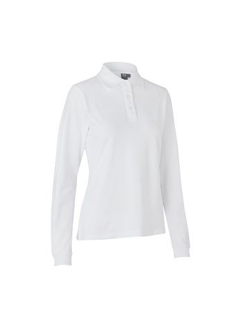 Tidløs poloshirt i pique kvalitet med stretch. Lange ærmer med elastisk rib afslutning. Indvendig med nakkespejl og nakkebånd. Tone i tone knaplukning