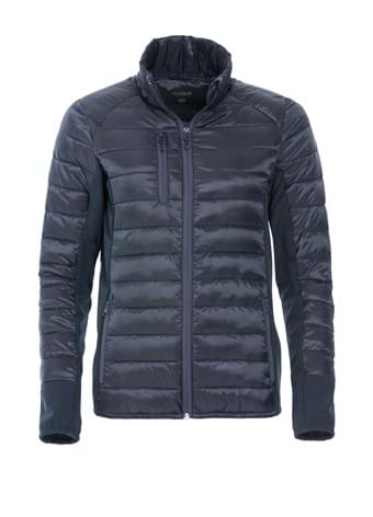 Moderne jakke med dun lignende polstring og softshell paneler. 3 udvendige lommer med lynlåse og 2 indvendige lommer. Løkke i nakken til høretelefoner.