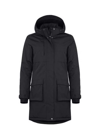 020985En polstret dameparka. Aftagelig og justerbar hætte foret med et blødt teddystof. Brystlomme med lynlås og to forlommer med magneter. To indvendige lynlåslommer og to indvendige meshlommer. Vatteret inderside og snøre i talje og forneden. Manchetter med justerbar velcro samt indvendig 2x2. Udstyret med smart øretelefonløsning.