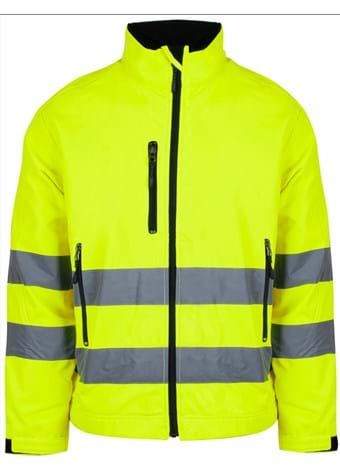 4641Unisex softshelljakke i fluoriserende farver med påsyede reflekser. Kontrastdetaljer, regulerbar linning og velcrolukning på ærmer. Praktiske lommer med lynlås på front og bryst. YKK lynlås. CE-mærket EN 20471, klasse 2
