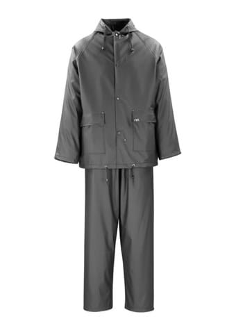 Vindtæt og vandtæt.; Det vandtætte materiale har svejsede sømme, så regnen ikke kan komme ind.; Ventilation i ryggen.; Ventilation under ærmer.; Trykknapregulering ved fod.