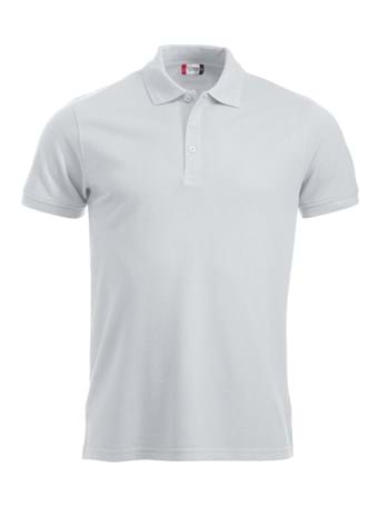 Polo med to jaquardstrikkede striber på kraven. Stolpelukning med 3 tone-i-tone knapper og slids i siden.