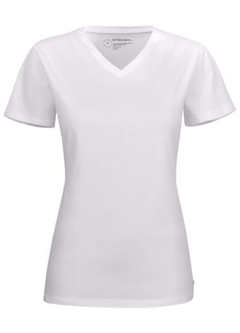 Stretchy blød klassisk v-hals t-shirt til daglig brug. Moderne pasform og dekoreret med en lille metalskilt på forsiden.