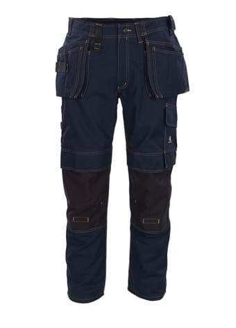 Slidstærke trenålssømme forlænger produktets levetid.; Ergonomisk formede bukseben er konstrueret efter kroppens naturlige bevægelser.; Forstærkede hængelommer kan gemmes væk, når de ikke bruges.; Knælommer af slidstærk CORDURA® - med indstik af knæpude fra oven og med overfald, så de ikke samler snavs.; Ekstra synlig for omgivelserne ved hjælp af reflekseffekter.; Samcertificeret til brug med MASCOT knæpudetype SHORT eller LONG, da knæpudelommen kan højdejusteres.