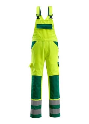 Overfladebehandlingen gør produktet smudsafvisende og sikrer dermed høj synlighed.; Slidstærke trenålssømme på ben og i skridt forlænger produktets levetid.; Individuel tilpasning med regulerbar linning.; Lårlomme med telefonlomme, klap og lynlukning.; Knælommer med indstik af knæpude fra neden, så de ikke samler snavs.; Samcertificeret til brug med MASCOT knæpudetype, LONG.