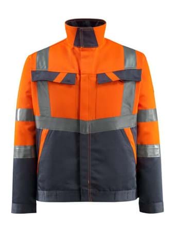 Ingen søm på toppen af skulderen: forhindrer vand i at blive liggende og trænge ind.; Det mørke stof er placeret, hvor produktet er mest udsat for snavs.; Ekstra sikkerhed ved at den lodrette refleks er ført helt ned til den vandrette refleks.; Slids i ærmer giver mulighed for at smøge ærmerne op.; Individuel tilpasning med regulering i nedre kant.; Produktet kan industrivaskes.
