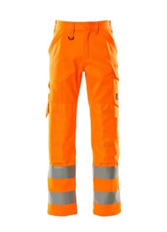 Kan nemt forlænges med 3 cm ved at sprætte den røde stikning på bagsiden op.; Knælommer af slidstærk polyester med indstik af knæpude fra neden, så de ikke samler snavs.; Knælommestof har coating på indersiden, som gør knælommen vandafvisende.; Slidstærke trenålssømme på ben og i skridt forlænger produktets levetid.; Særlig konstruktion af buksebenet bagpå, således der ikke er overflødigt stof i knæhasen, når man ligger på knæ.; Produktet kan industrivaskes.; Samcertificeret til brug med MASCOT knæpudetype SHORT eller LONG, da knæpudelommen kan højdejusteres.