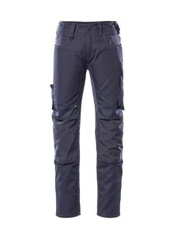 Super pasform med formskårede ben og kile på indersiden af ben og i skridt (med ekstra forstærkning).; Slidstærke trenålssømme på ben og i skridt forlænger produktets levetid.; Telefonlomme integreret i højre forlomme.; Knælommer af slidstærk CORDURA® - med indstik af knæpude fra oven og med overfald, så de ikke samler snavs.; Ekstra synlig for omgivelserne ved hjælp af reflekseffekter.; Samcertificeret til brug med MASCOT knæpudetype SHORT eller LONG, da knæpudelommen kan højdejusteres.