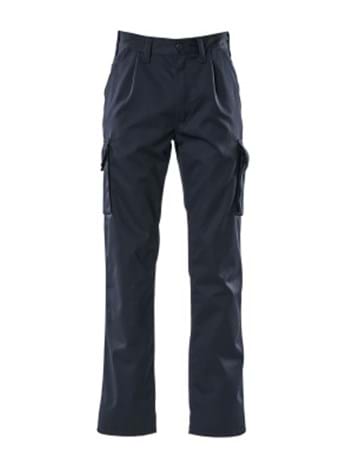 Slidstærke trenålssømme på ben og i skridt forlænger produktets levetid.; Gylp med lynlås.; Billetlomme og penlommer.; Forstærkning på baglommer.; Lårlomme med telefonlomme, klap og lynlukning.; Produktet kan industrivaskes.
