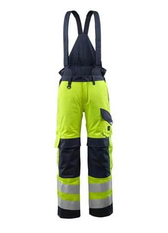 Åndbar, vind- og vandtæt med tapede sømme.; Antistatisk, syrebeskyttende og flammehæmmende.; Smudsafvisende.; Forhøjet rygstykke giver både støtte og varme.; Knælommer kan reguleres, så knæpuder er placeret optimalt i forhold til dine knæ.; Samcertificeret til brug med MASCOT knæpudetype SHORT eller LONG, da knæpudelommen kan højdejusteres.