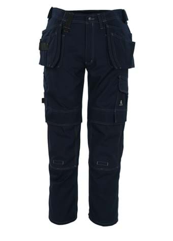 Slidstærke trenålssømme forlænger produktets levetid.; Ergonomisk formede bukseben er konstrueret efter kroppens naturlige bevægelser.; Forstærkede hængelommer med ekstra lommer og stropper til værktøj.; Knælommer af slidstærk CORDURA® - med indstik af knæpude fra oven og med overfald, så de ikke samler snavs.; Ekstra synlig for omgivelserne ved hjælp af reflekseffekter.; Samcertificeret til brug med MASCOT knæpudetype SHORT eller LONG, da knæpudelommen kan højdejusteres.