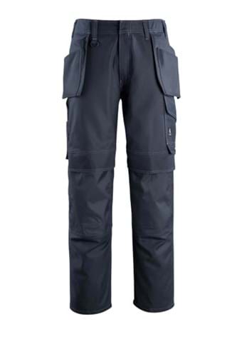 Slidstærke trenålssømme på ben og i skridt forlænger produktets levetid.; Ergonomisk formede bukseben er konstrueret efter kroppens naturlige bevægelser.; Hængelommer i polyester med forstærkninger og ekstra lommer.; Knælommer i polyester med indstik af knæpude fra oven og med overfald, så de ikke samler snavs.; Ekstra synlig for omgivelserne ved hjælp af reflekseffekter.; Produktet kan industrivaskes.; Samcertificeret til brug med MASCOT knæpudetype SHORT eller LONG, da knæpudelommen kan højdejusteres.